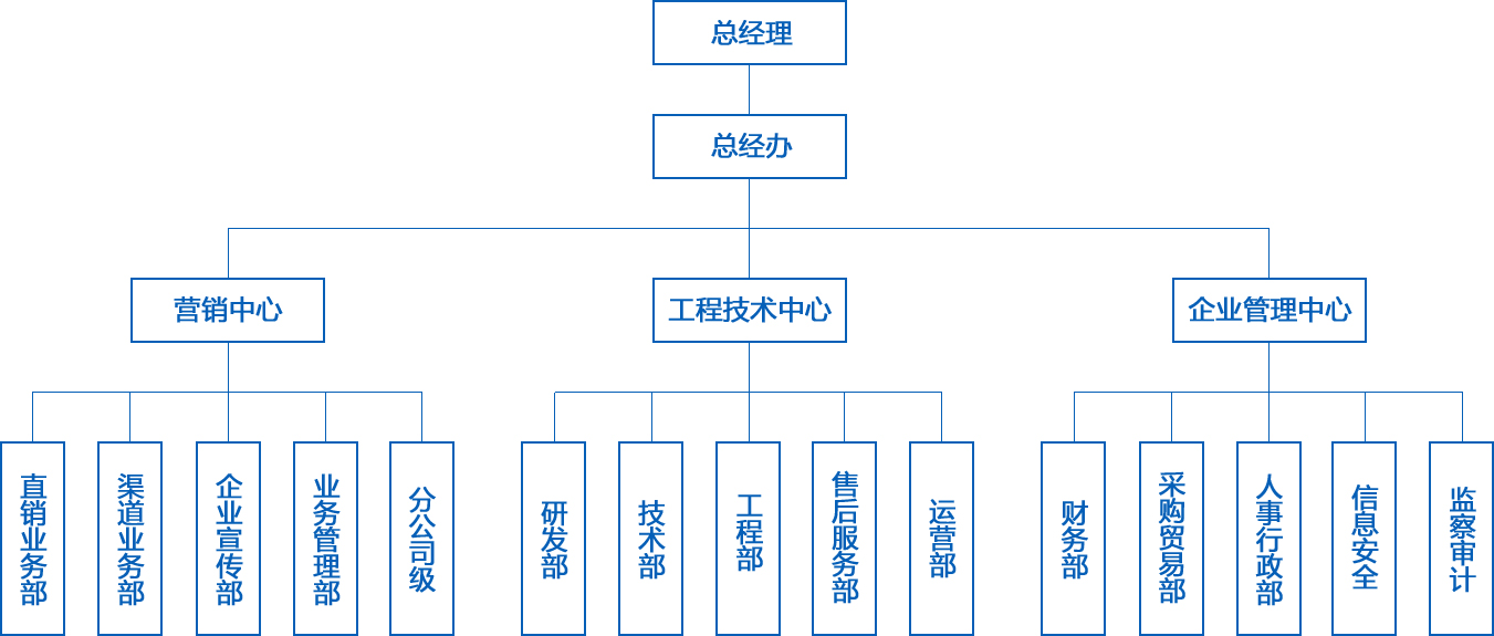 總經辦為公司領導/經營/管理核心,下設3中心(包括:營銷中心、工程技術服務中心和企管中心)和14個職能部門。公司在上海、石家莊、西安、長春、沈陽、太原、青島、濰坊、合肥、烏魯木齊和成都等地設有分公司、辦事處或服務站;現有員工150余人,其中:高級管理人員15人、高級技術專家5人、水暖工程師6人,電氣工程師4人,工程預算師3人,專業鍋爐及供暖系統安裝人員近60人。他們以高超的專業技術為廣大用戶及各地代理商提供完善的售前/售中/售后服務。